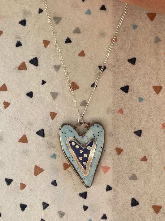 Seconds - Handmade Silver & Blue Heart Ceramic Charm Necklace