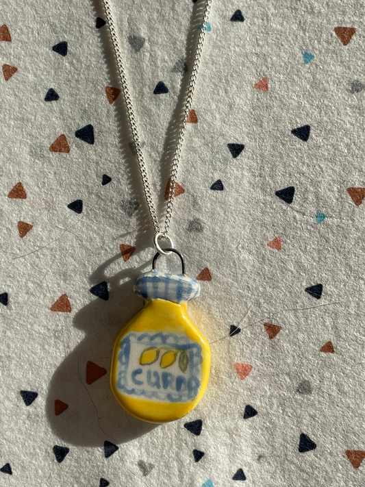 Handmade Lemon Curd Jar Ceramic Charm Necklace