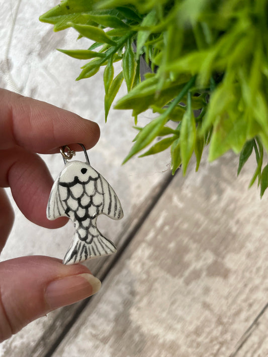 Hand Painted Black & White Fish Charm Necklace, Nautical Jewellery