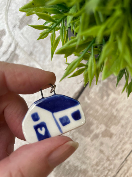 Hand Painted Blue Little House Charm Necklace | Cosy Home Jewellery | Sister Sister