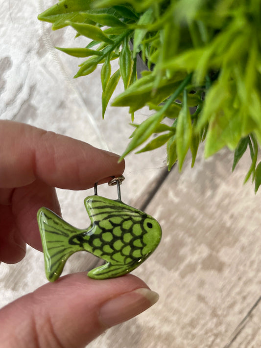 Hand Painted Green Fish Charm Necklace, Ocean-Inspired Jewellery