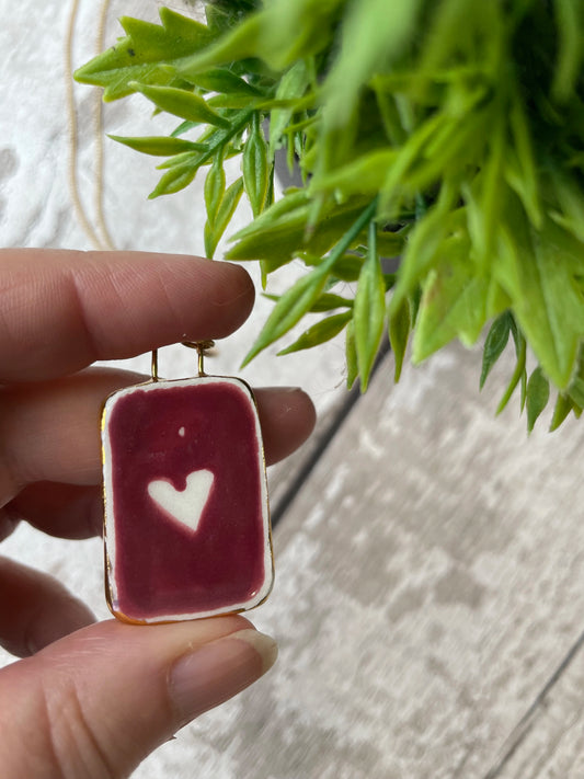 Hand Painted Queen of Hearts Playing Card Charm Necklace, Gold Lustre Edge
