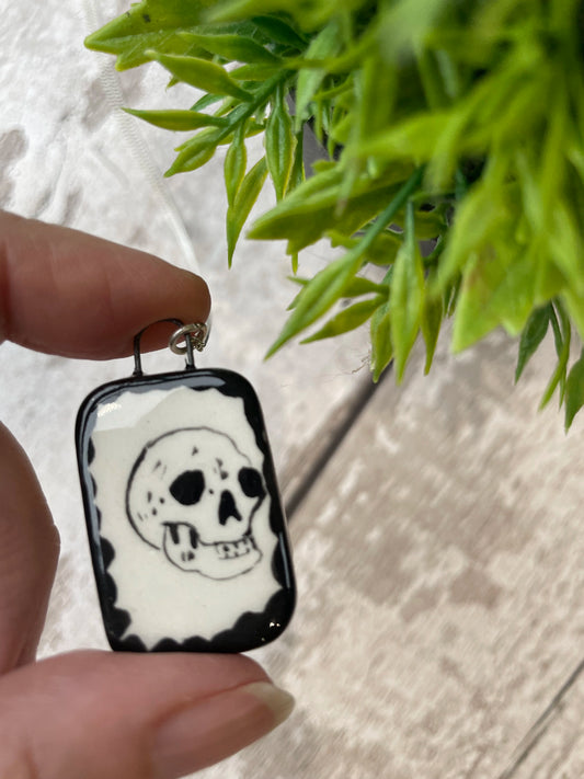 Hand Painted Skull Charm Necklace, Gothic & Quirky Jewellery