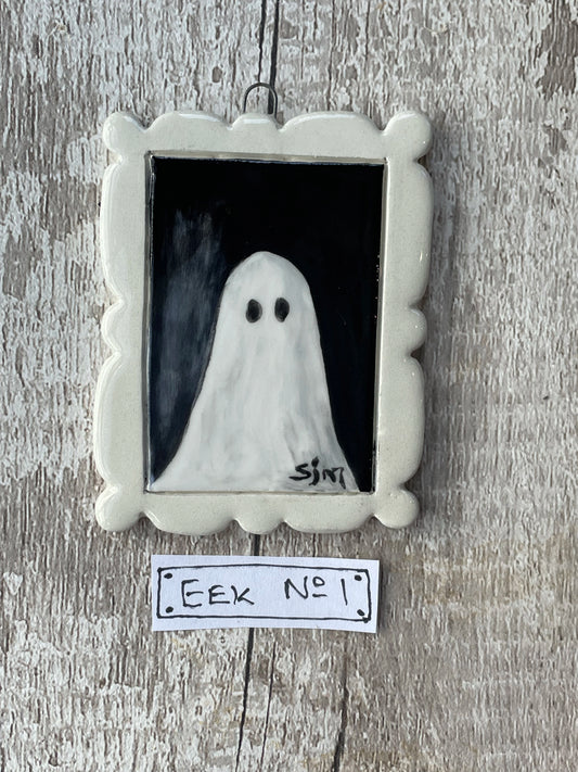 Hand Painted Ghost Mini Masterpiece “Eek” Ceramic Wall Art Sister Sister