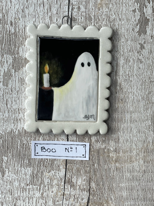 Hand Painted Ghost Mini Masterpiece “Boo” Collection Ceramic Wall Art