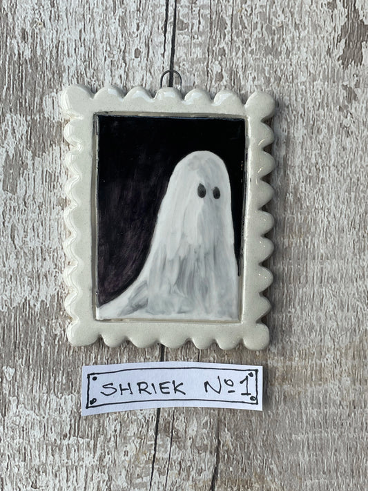 Hand Painted Ghost Mini Masterpiece “Shriek” Ceramic Wall Art Sister Sister