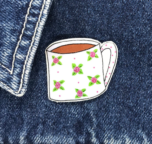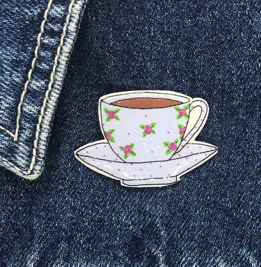 Vintage Rose Bud Tea Cup & Saucer Handmade Pin