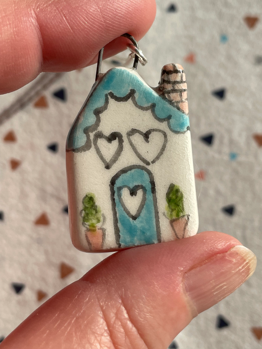 Seconds - Handmade Blue Door House Ceramic Charm Necklace