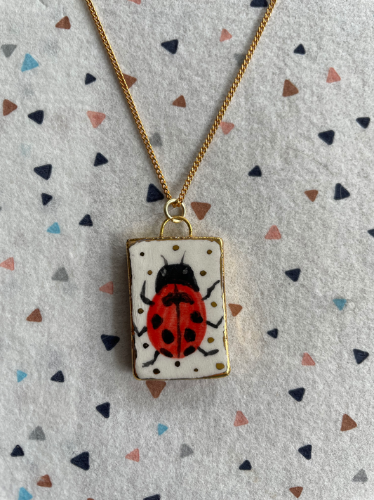 Seconds - Handmade Ceramic Charm Necklace with hand painted Ladybird design