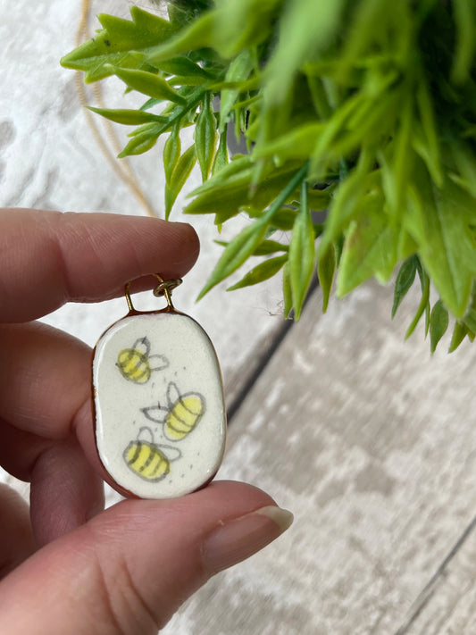 Seconds – Hand Painted Bee Charm Necklace Gold Plated Chain