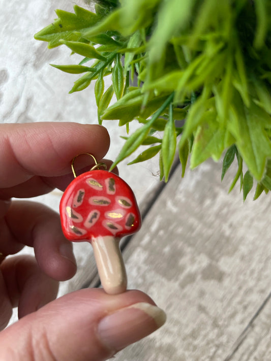 Seconds – Hand Painted Red Mushroom Charm Necklace, Gold Plated Chain