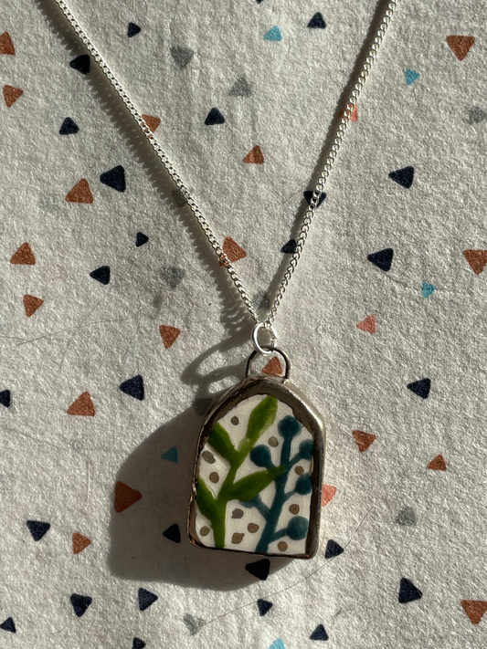 Seconds - Handmade Green & Blue Leaves Ceramic Charm Necklace