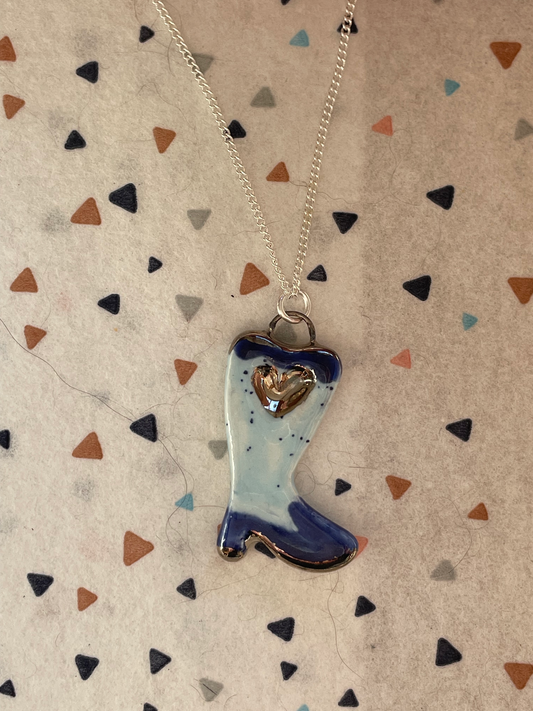 Seconds - Handmade Cowboy Boot in blue Ceramic Charm Necklace
