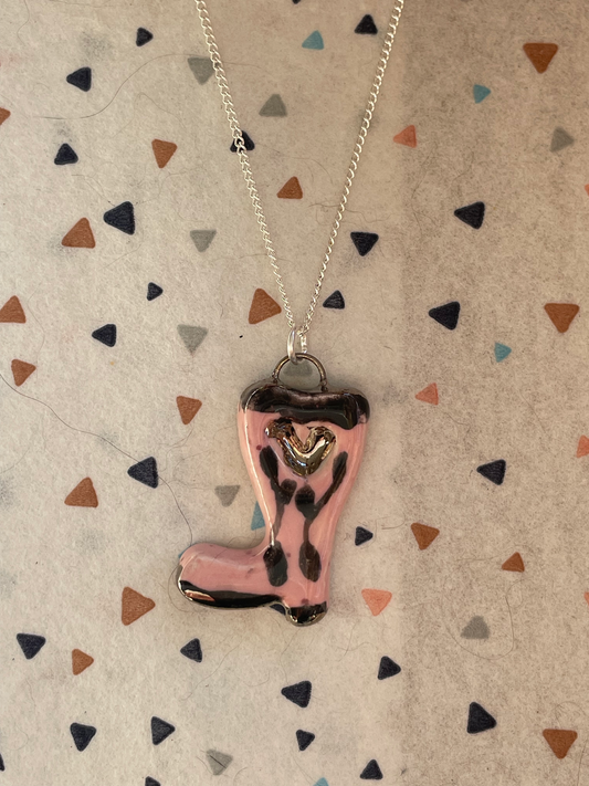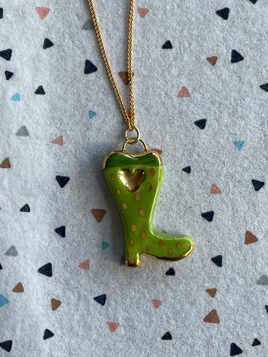 Seconds - Handmade Green welly Ceramic Charm Necklace