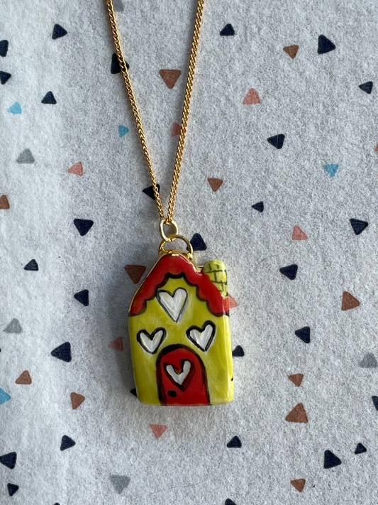 Seconds - Handmade Yellow House Ceramic Charm Necklace