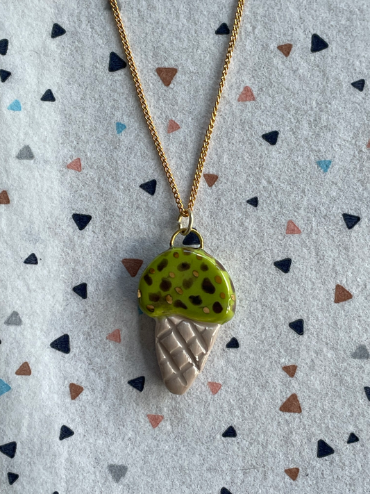 Seconds - Handmade Mint Choc Chip Ice Cream Cone Ceramic Charm Necklace