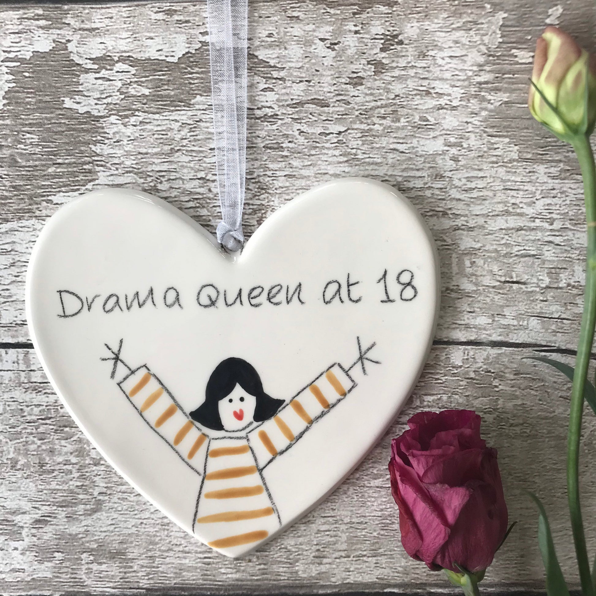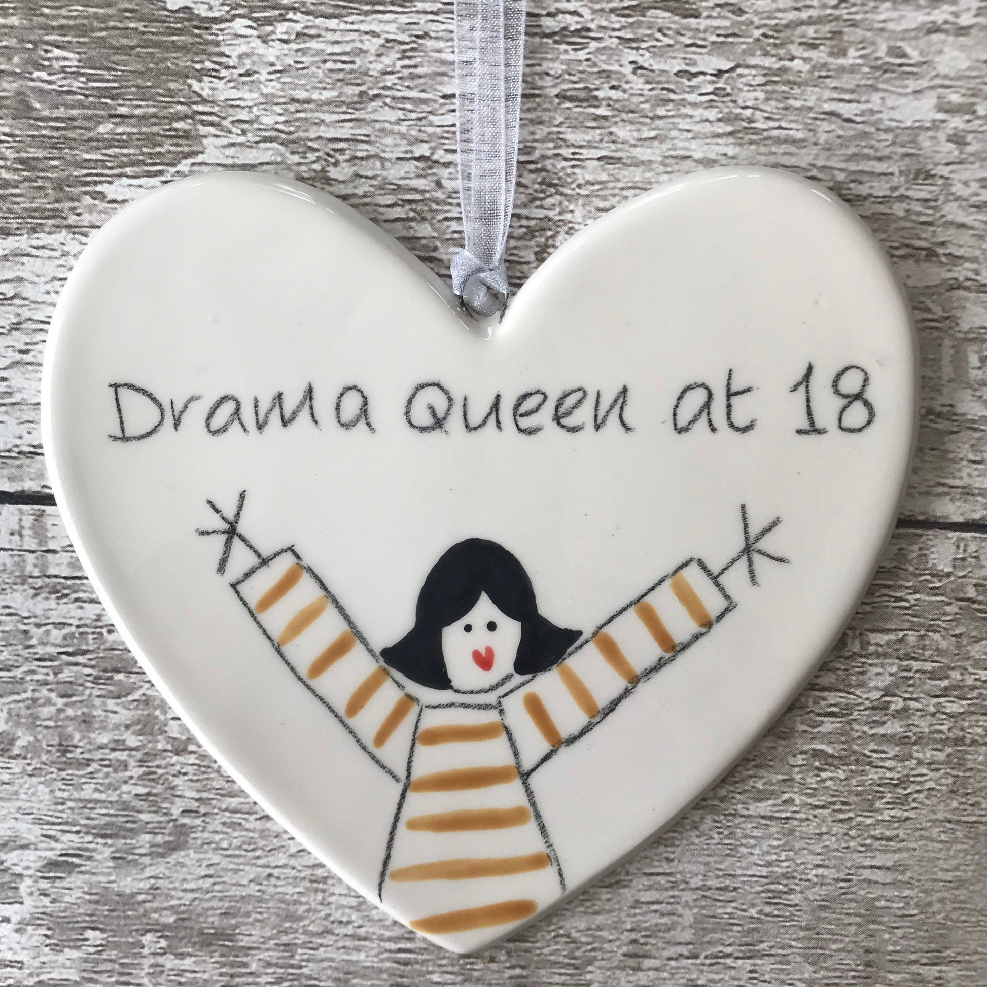 Drama Queen at 18 - Hand Painted Ceramic Heart
