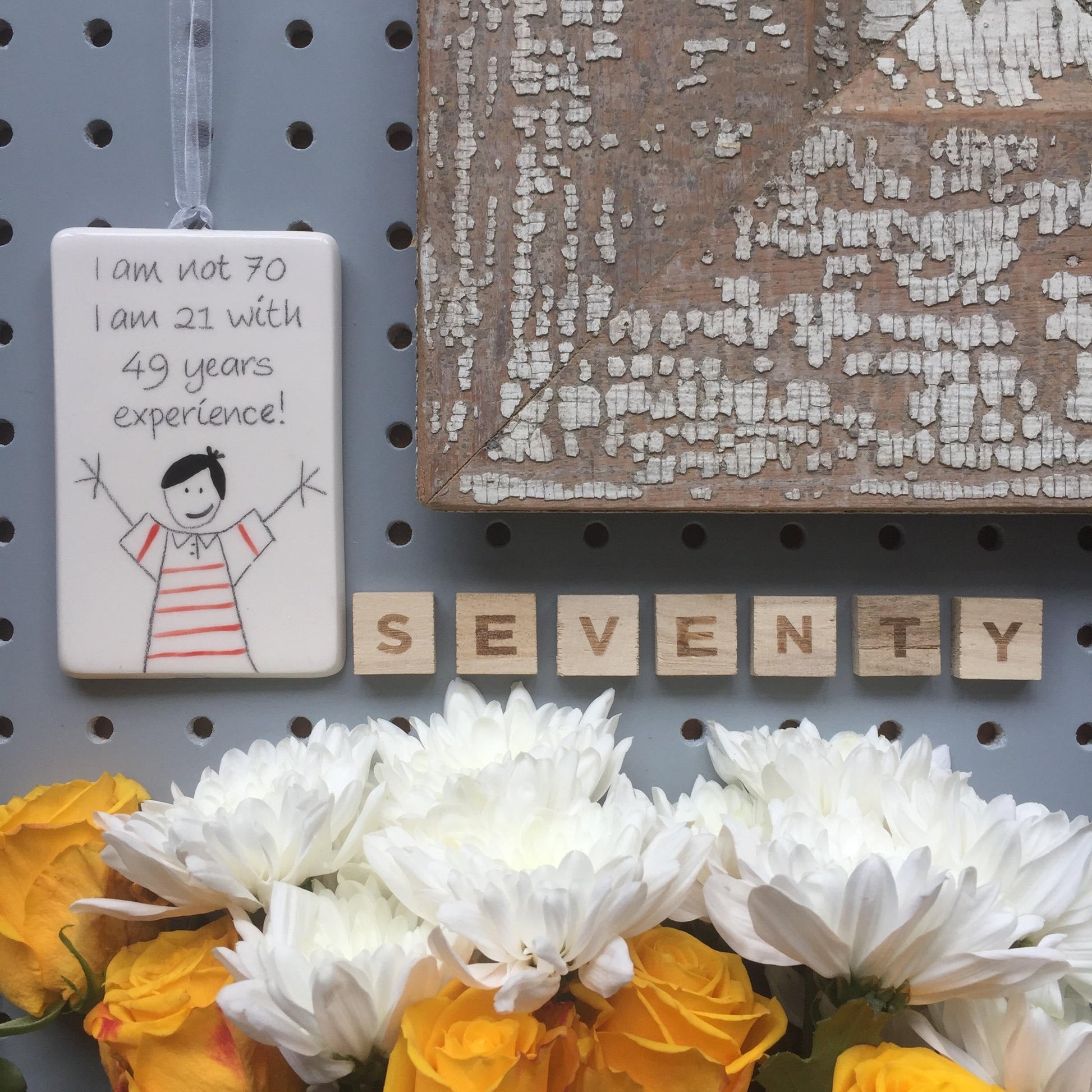 Our hand painted ceramic plaques are the perfect gift to commemorate a special loved one's 70th birthday.