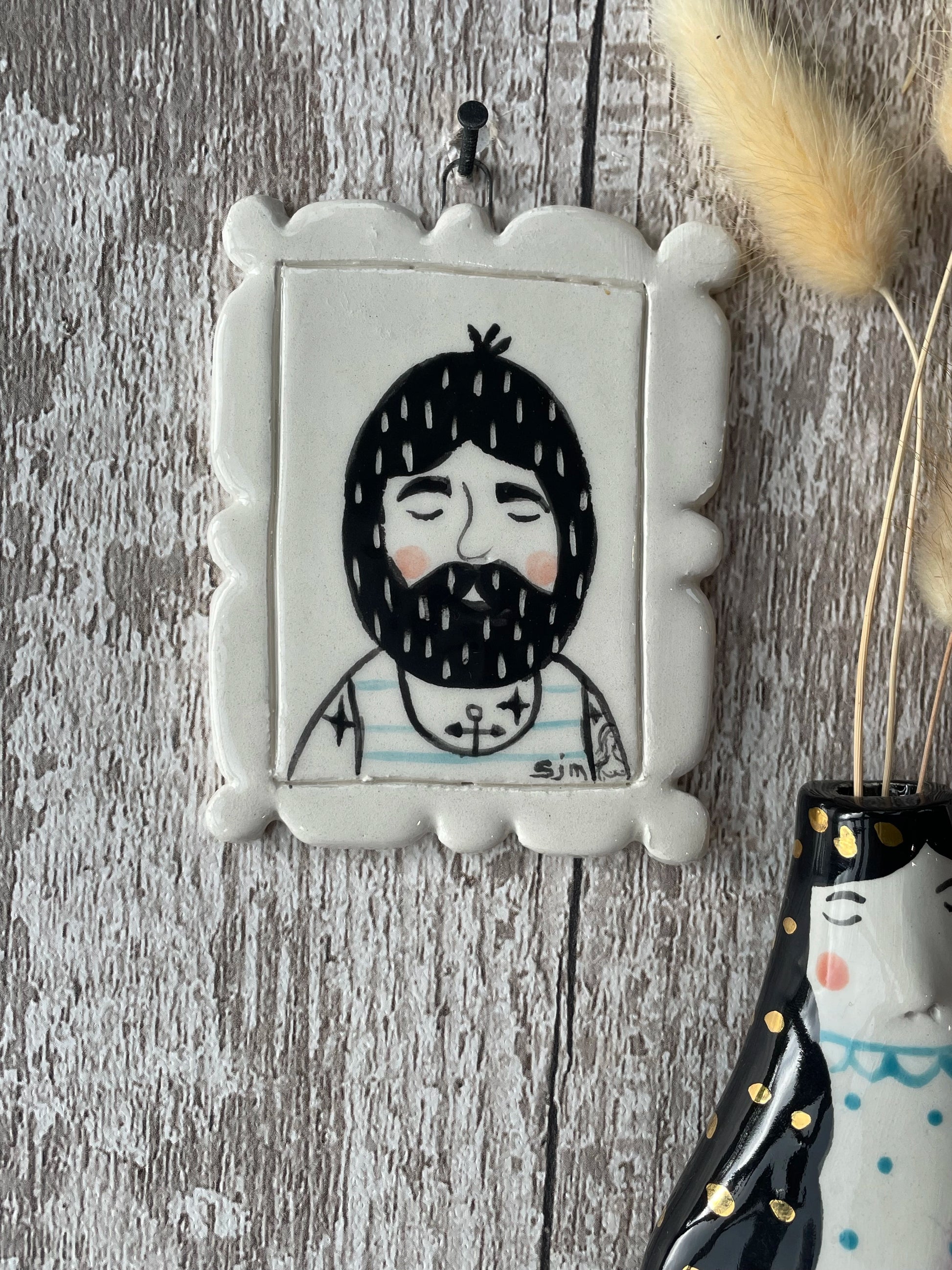 Captain Moss – Bearded Sailor with Anchor Tattoo Ceramic Mini Masterpiece Wall Art