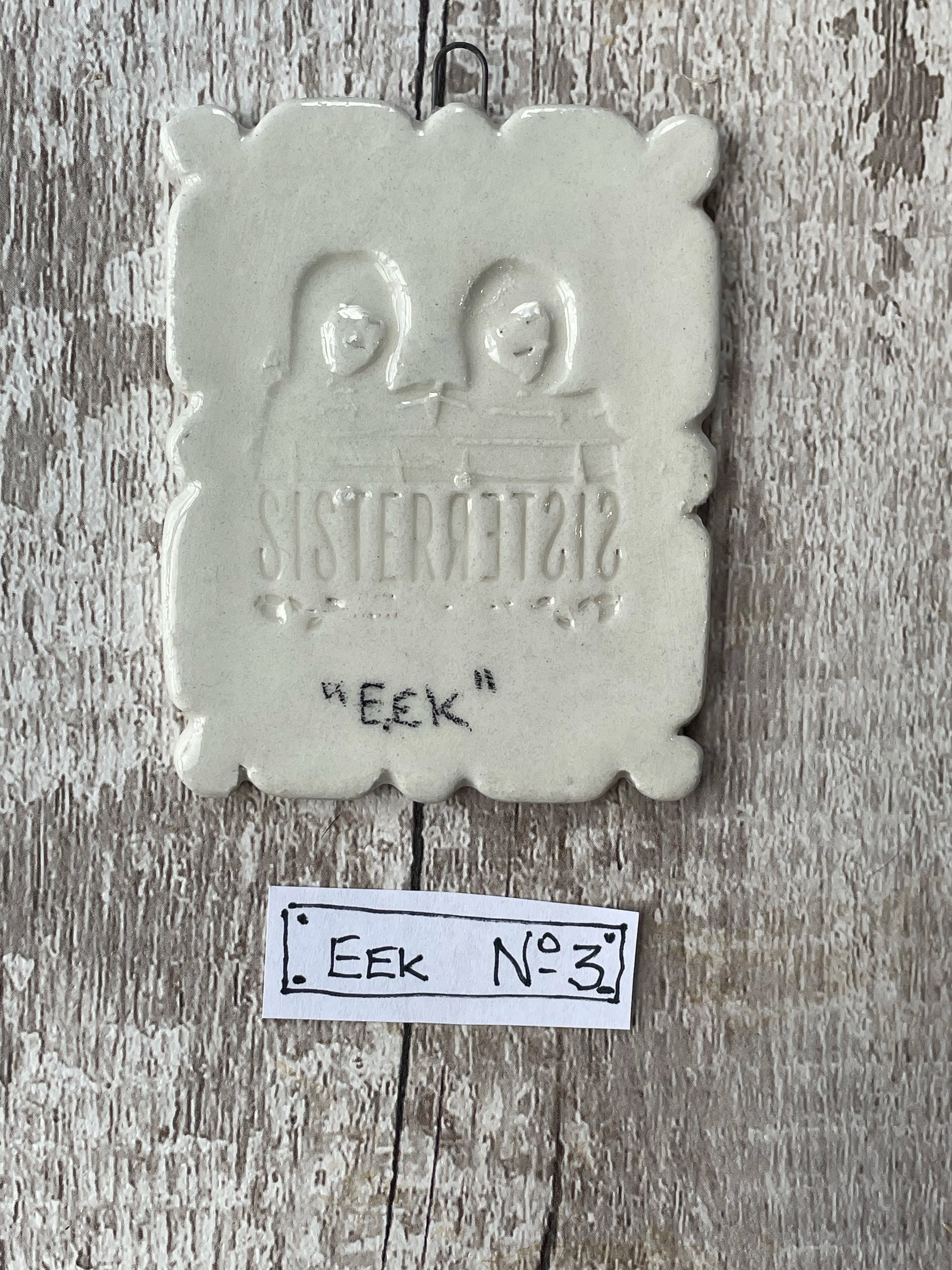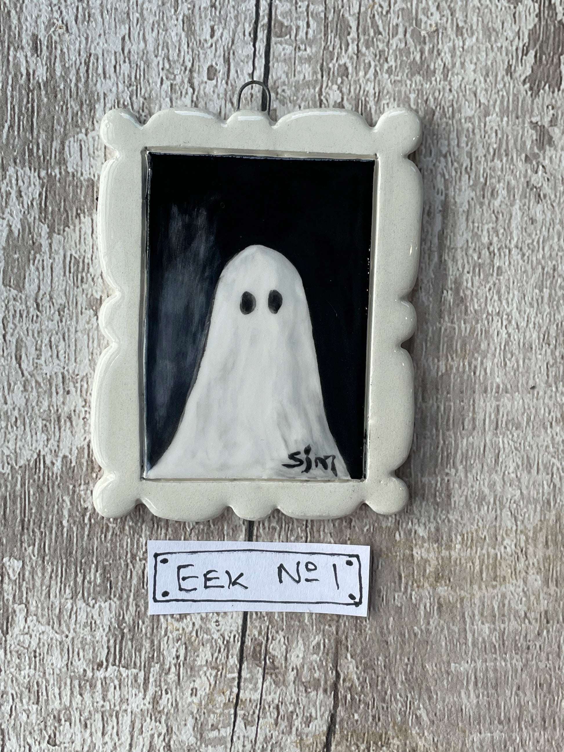 Meet Eek a hand painted ceramic ghost mini masterpiece. Unique wall art handmade by Sister Sister. Each Eek has its own charm and personality.