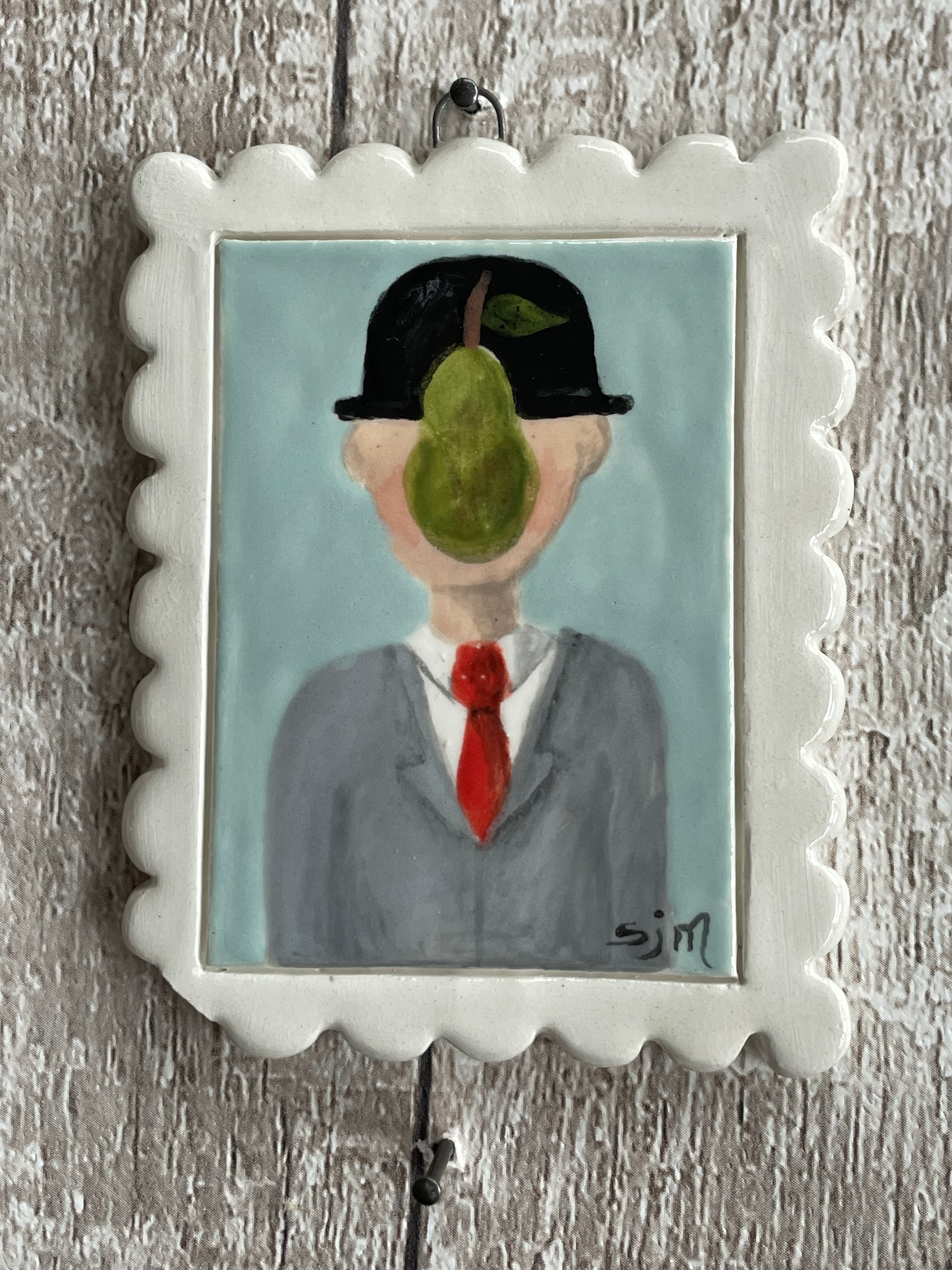 From my new range of mini masterpieces, this one is titled Peardrop. Based on the famous portrait of The Son of Man.