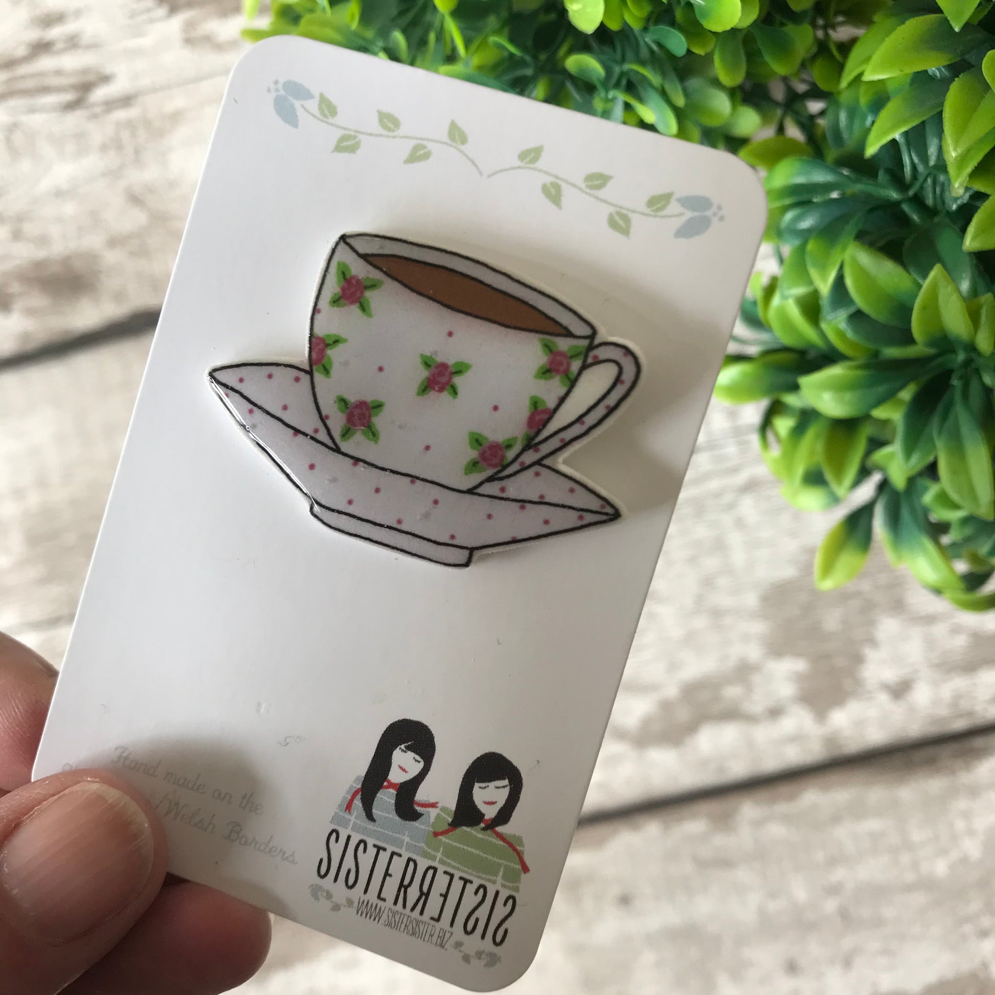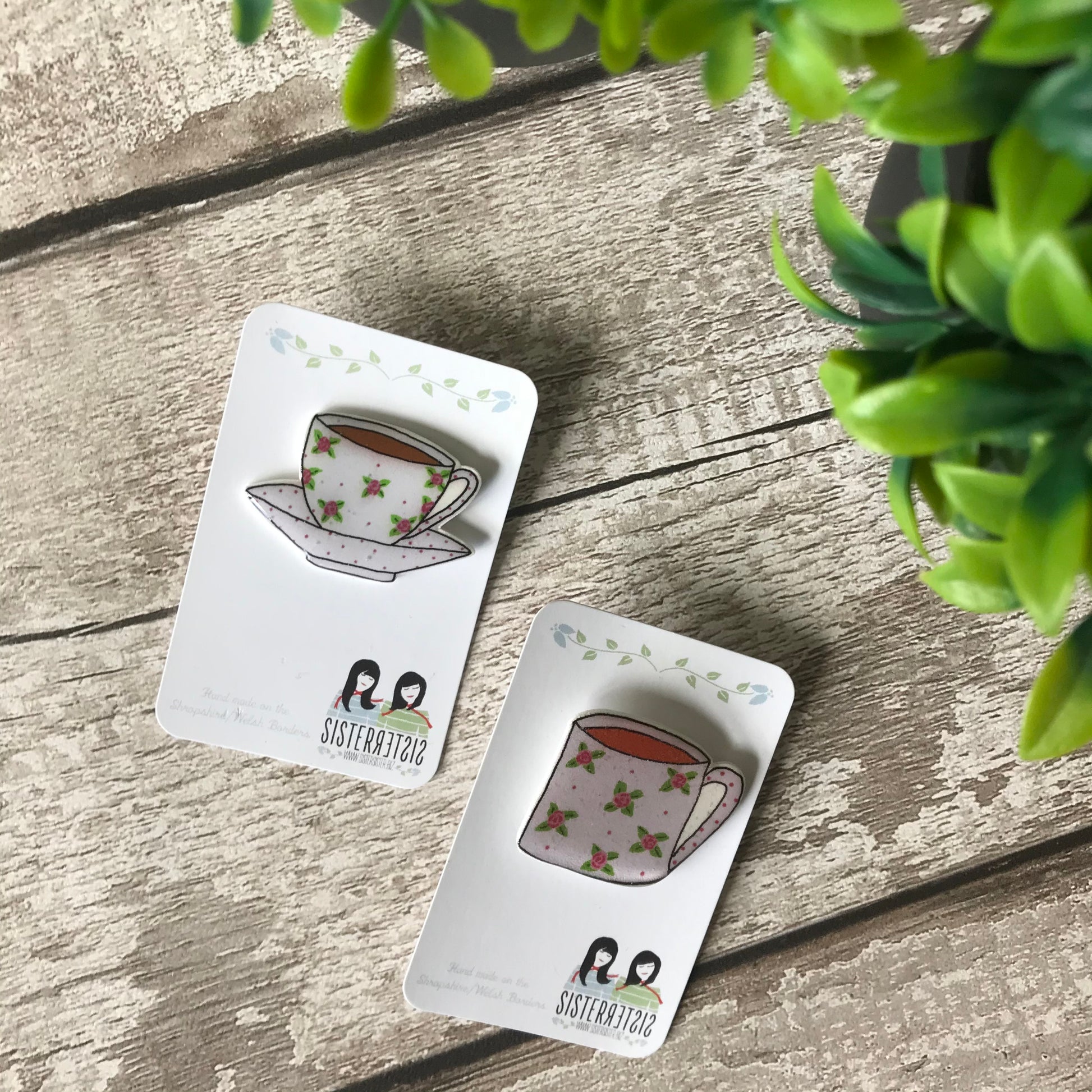 Vintage Rose Bud Tea Cup & Saucer Handmade Pin